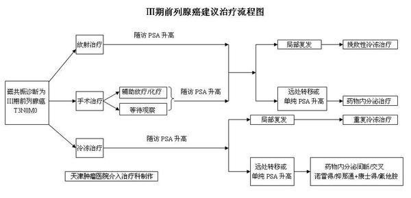 基于治疗对象是易临床进展包括局部复发高危人群,故需要多样化的综合治疗,但存在技术与策略问题。患者朋友应该理解,有关Ⅲ期前列腺癌治疗在国内外还处于 探索阶段,因此,尚不能评价哪个治疗好,哪个不好。但根据我们长期临床实践及对期前列腺癌的认识与总结,依据我们最新一组临床研究结果(详见学术动态中一文)和国外最新文献,给朋友们提出如下建议,仅供治疗选择时参考。