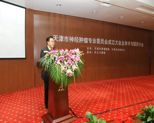 | 由天津市抗癌协会、天津医科大学肿瘤医院脑系肿瘤科主办,天士力药业集团承办的天津市抗癌协会神经肿瘤专业委员会成立大会及学术研讨会于2011年1月8日在天津举行,参会人员主要来自天津地区各医院神经外科主任及在国内具有一定影响的神经外科专家,包括天津医科大学总医院杨树源教授,中华医学会神经外科学会副主任委员张健宁教授,天津环湖医院杨玉山教授等,天津市科协副主席白景美、天津市抗癌协会理事长李强教授,中国抗癌协会神经肿瘤专业委员会主任委员陈忠平教授及天津天士力药业集团副总裁女士到会并致辞,会议选举产生了第一届天津市抗癌协会神经肿瘤专业委员会委员,其中主任委员1名,副主任委员8名,委员53人,顾问12人,天津医科大学附属肿瘤医院脑系肿瘤科科主任李文良教授担任主任委员,副主任委员有于士柱教授、岳树源教授、杨学军教授、李牧教授、徐德生教授,黄楹教授、刘魁教授及王晓光教授。北京协和医院神经外科主任王任直教授、北京三博医院神经外科主任于春江教授、中山医科大学附属肿瘤医院神经外科主任陈忠平教授及天津医科大学附属肿瘤医院李文良教授分别就垂体瘤并发症的处理、颅底肿瘤的颅神经保护、神经系统肿瘤诊治纲要解读及脑干肿瘤的外科干预的临床意义进行了专题演讲,会议进行学术交流发言的还有杨玉山教授,岳树原教授,于士柱教授,杨学军教授,王晓光教授及李鹏博士等,会议取得了圆满成功。