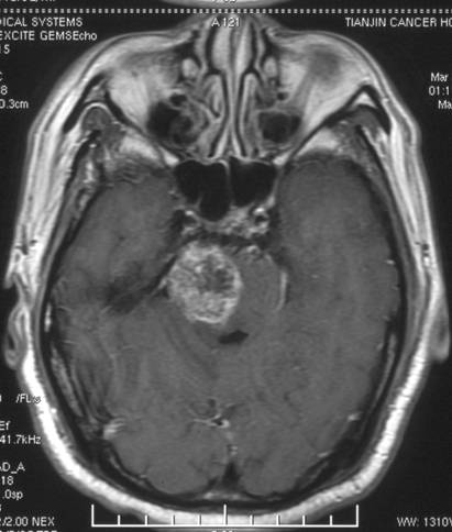 2、.听神经瘤:中小型听神经瘤(直径<3cm)可首选射波刀治疗,手术后残留或术后复发听神经瘤也是射波刀治疗的良好适应证。部分大型听神经瘤(直径>30mm)患者,如果高龄或有手术禁忌证时仍可考虑射波刀治疗。