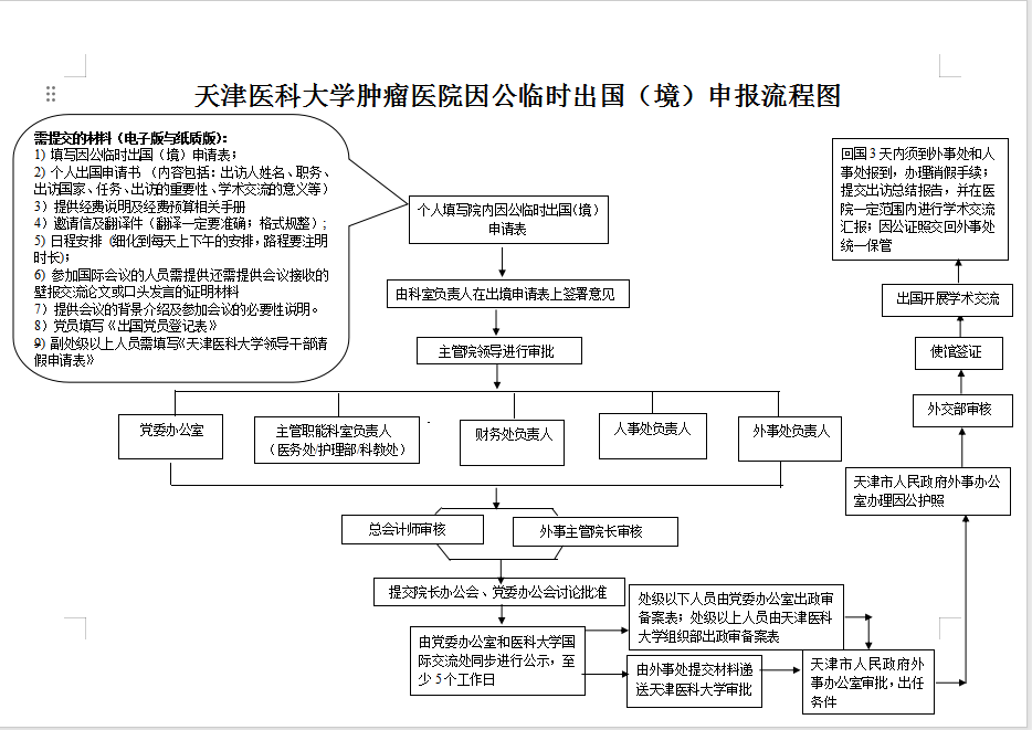 天津医科大学肿瘤医院因公临时出国(境)申报流程图