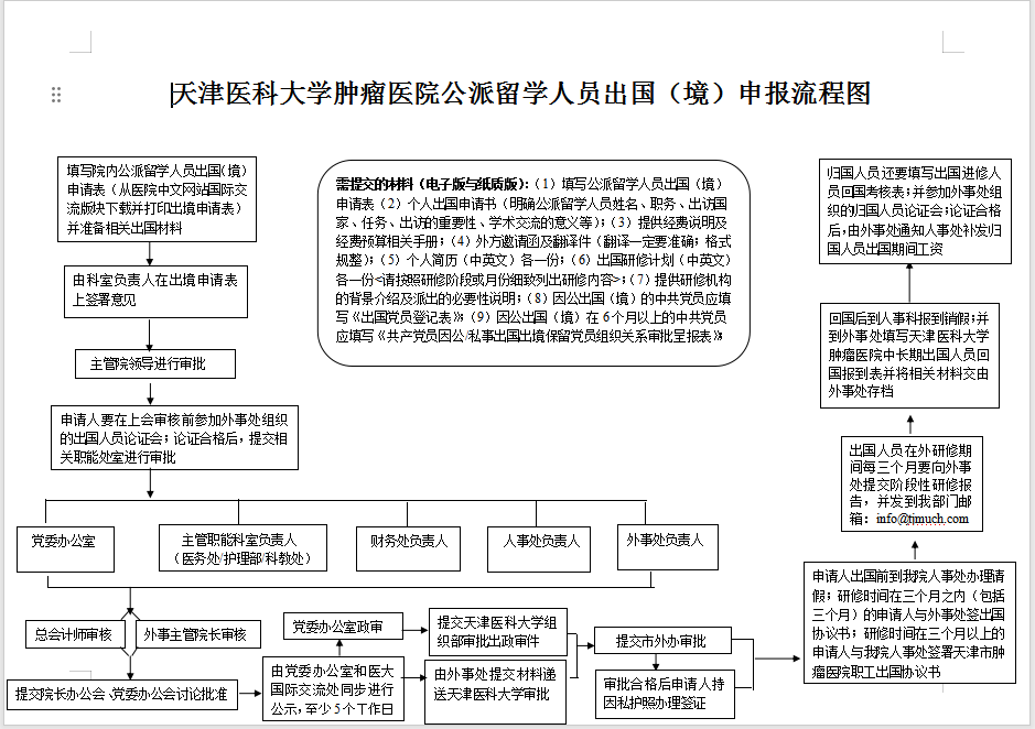 天津医科大学肿瘤医院公派留学人员出国(境)申报流程图