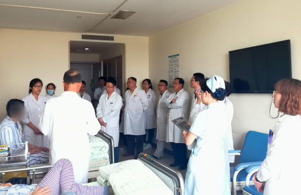 最后,天津医科大学二院李奕主任和何屏主任对本次查房进行了深入点评,认为本次教学查房前期准备充分、态度认真、病例选择适当;建议:明确教学查房目标,锻炼学生临床思维,加强医生对患者的人文关怀。