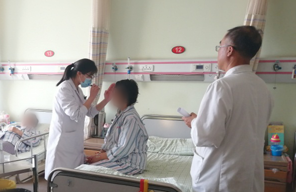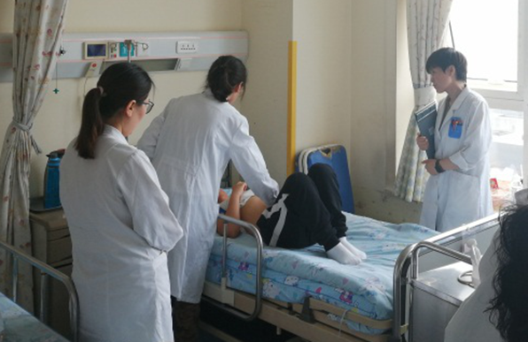 住院医师靳燕对查体进行了补充,主查医师李杰主任对研究生触诊的手法及顺序进行了纠正和正确示范,进一步培养了学生的临床思维。