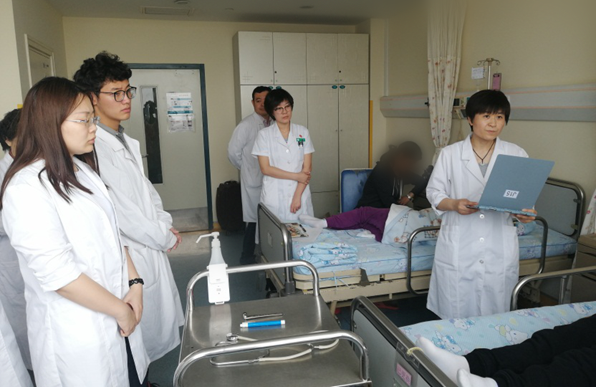 最后,天津医科大学总医院纪主任对本次教学查房活动进行点评,她认为学生准备充分,并用英文进行了病历汇报,病种选择符合教学要求,在讨论过程中能紧密结合病例特点,分析透彻。同时,查房过程中也存在一些不足之处:时间掌控有待提高,可以进一步增强师生互动。