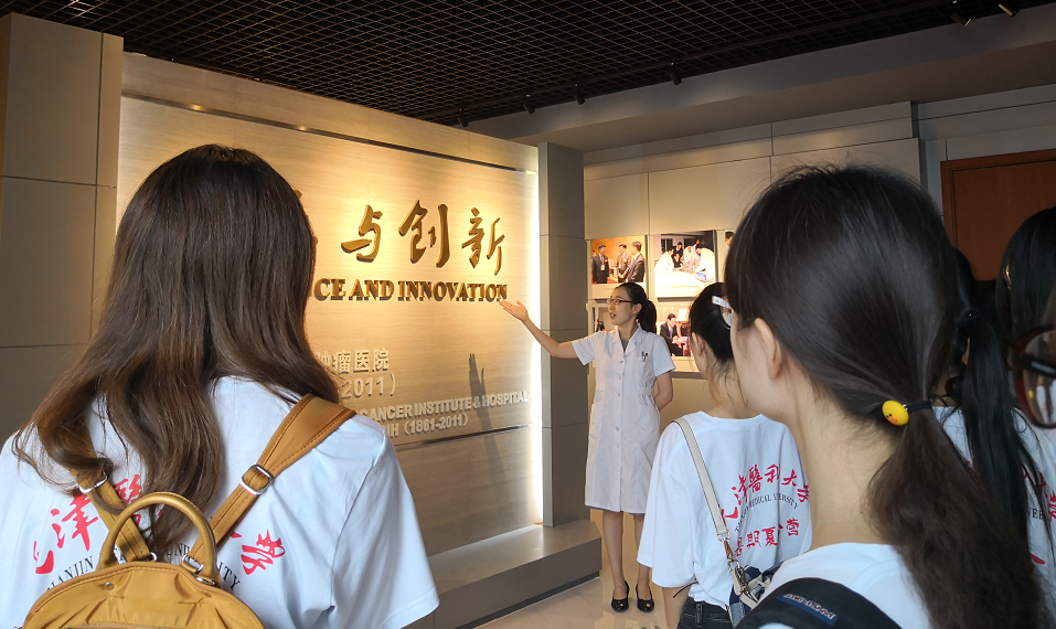 本期夏令营活动首站来到医院院史馆。作为我国肿瘤学科的发祥地,我院已经走过了150多年的光辉岁月,是一所历史悠久、文化底蕴深厚、人文积淀浓郁的医院。院史馆从人才荟萃、精湛医术、科技兴院、对外交流等方面回顾总结了老一辈开拓者艰苦创业、辛勤耕耘的坎坷历程,展示了传承者开拓创新、励精图治、奋发有为创造辉煌的足迹。营员们被我院“德高医粹、尚新至善”的院训所鼓舞,纷纷表示将不忘医者初心,为健康中国事业贡献自己的力量。