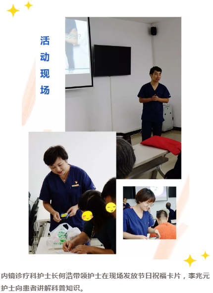 中秋节前夕,内镜诊疗科开展“微笑服务行动之胃、肠镜检查知多少”大讲堂活动。来自结直肠肿瘤科、胃部肿瘤科等不同科室的患者、家属及医务人员积极参与。