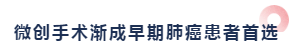 “微创”不仅是体现在手术切口上,最主要体现在快速康复上。早期和部分进展期肿瘤患者只需打1个或几个1-3厘米的小孔,就可将肿瘤完整切除,并进行彻底的淋巴结清扫。微创手术不需要切断肋骨,也尽量避免了肌肉损伤,具有创伤小、时间短、康复快等诸多优势,已成为早期肿瘤患者尤其是高龄患者外科治疗的首选。