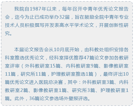 本届优秀论文报告会有300余名专业技术人员参加,为中青年优秀人才提供了展示的机会,也营造了院内交流新技术、新成果的学术氛围。