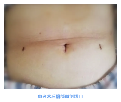 患者对几乎无法察觉的微创手术切口十分欣喜,又对术后消化道功能的快速恢复十分满意。目前患者正在医院进行术后化疗。