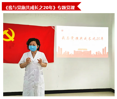 临床六党总支书记李世霞以“我与党旗共成长之20年”为主题为全体党员带来了一场生动的党课,她结合自己的入党初心及工作经历,详细阐述了新形势下基层党建工作的要求,以及作为一名党员干部,应该如何践行入党初心,更好地发挥党员先锋模范作用。