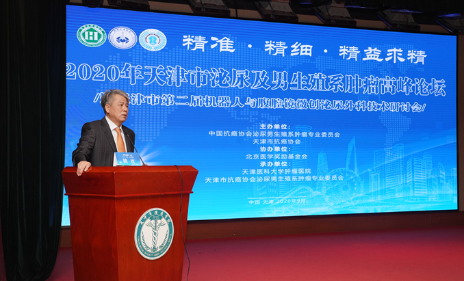 | 2020年9月12日由中国抗癌协会泌尿生殖系肿瘤专业委员会、天津市抗癌协会主办、天津医科大学肿瘤医院泌尿肿瘤科、天津市抗癌协会泌尿男生殖系肿瘤专业委员会承办的 “天津市第二届机器人与腹腔镜微创泌尿外科技术研讨会暨2020天津泌尿肿瘤高峰论坛”在天津顺利举行。本次会议继续以“精准精细 精益求精”为主题,以泌尿系统肿瘤的微创演示手术为专题,邀请到多位国内泌尿外科的顶尖专家分享和交流手术经验心得。在此次会议中,天津医科大学肿瘤医院泌尿肿瘤科科主任姚欣教授分享了我院泌尿肿瘤科500多例机器人手术的单中心总结,表示科室在开展前列腺癌、肾癌、膀胱癌等多种恶性肿瘤的机器人手术的基础上,不断挑战医学领域的“不可能”,针对既往认为难以实现的高难度手术,比如肾门型肿瘤或肾癌复发患者,也能够通过机器人技术在做到完整切除的基础上为患者保留肾功能,为推动天津市乃至周边地区泌尿微创技术水平整体提升贡献力量。