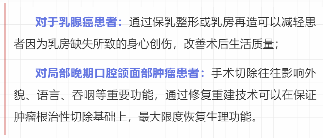 但目前国内仅有部分医疗资源发达地区能够开展肿瘤整形外科技术,多数基层医院没有整形外科医生,也缺乏开展肿瘤整形外科的技术条件,在肿瘤切除后的修复方面有较大的局限性。部分肿瘤患者会考虑术后缺损对生活质量的影响,不愿选择完整切除肿瘤,甚至有可能选择放弃手术治疗。还有部分患者不能在手术切除肿瘤的同时就即刻开展修复,后又因为缺损部位的血运、形状等发生改变,错失整形修复的最佳时机。