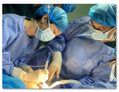 乳房再造科主任尹健教授进行手术示教,为3位患者进行了即刻扩张器植入手术及Ⅱ期TRAM瓣乳房再造手术。