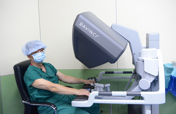 梁寒教授操作达芬奇机器人系统