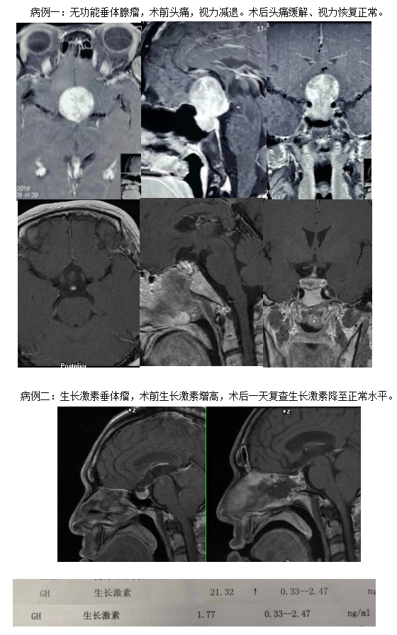 经鼻内镜手术原为耳鼻喉科用来治疗鼻腔副鼻窦疾病的常用手段。现在被神经外科医师所用,取代传统的显微神经外科手术。使用神经内镜通过鼻腔,打开蝶窦,筛窦、进一步磨除斜坡骨质等结构,可以对鼻腔、副鼻窦、前颅窝底、鞍区、斜坡、枕骨大孔区肿瘤进行手术治疗。相比显微神经外科手术,具有对病灶抵近观察,照明好,显露充分,死角少,肿瘤切除率高,对正常结构破坏小,术后恢复快等优点。