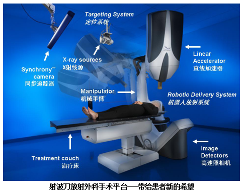 颅内肿瘤的治疗目前主要是手术和放疗。由于手术风险大、易感染和并发症、后遗症多往往让人望而生畏。因此,就促使了“伽马刀”的发明。“伽马刀”应用于临床治疗50余年,治疗了上百万的病例,取得了一定疗效。这一技术也得到广大医患人员的认可。由于“伽马刀”技术受当时的科技的影响,其治疗方式现在看来有很多不足和需要改进的地方。正是由于近些年来,计算机的发展,现代影像学(核磁、CT)的进步,经过神经外科医生和相关科学家的合作,制造出全球最新的、智能化的放射外科新技术————射波刀(Cyberknife)