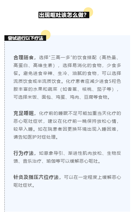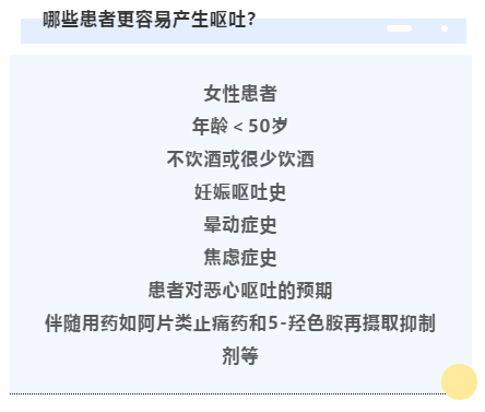 | 化疗是恶性肿瘤的重要治疗手段,化疗所致恶心呕吐在众多胃肠道反应中最为常见。恶心呕吐症状会导致患者食欲下降,进食量减少,体重减轻,重度呕吐可使病人出现水、电解质、酸碱平衡紊乱,影响化疗的继续进行。