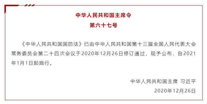 第四条 国防活动坚持以马克思列宁主义、毛泽东思想、邓小平理论、“三个代表”重要思想、科学发展观、习近平新时代中国特色社会主义思想为指导,贯彻习近平强军思想,坚持总体国家安全观,贯彻新时代军事战略方针,建设与我国国际地位相称、与国家安全和发展利益相适应的巩固国防和强大武装力量。