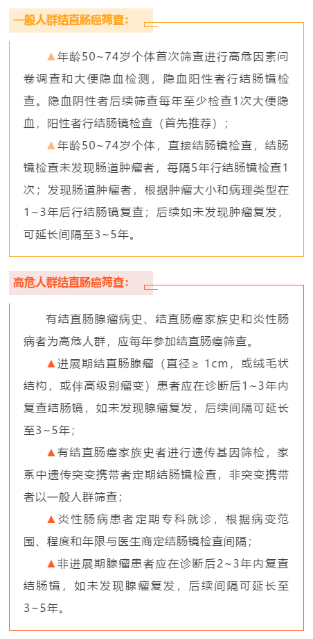 对以上高危人群,建议行纤维结肠镜检查或钡剂灌肠检查以排除结直肠癌。