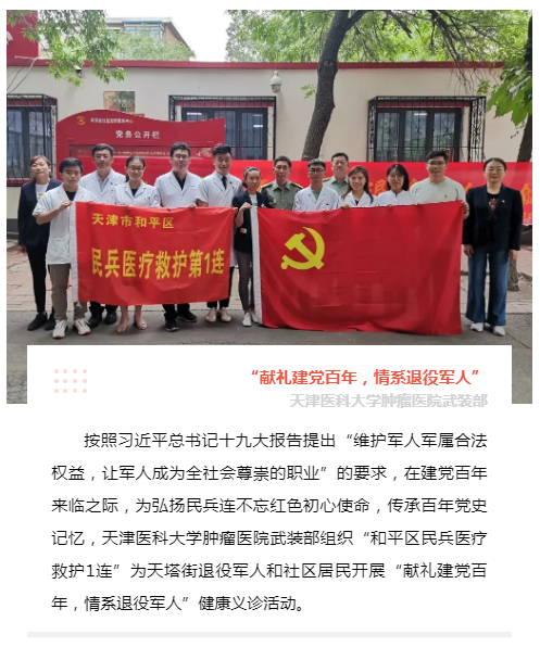 6月24日下午,在院党委领导下,在中西医结合科、超声诊断科、预防科的大力协助下,武装部组织民兵救护1连为天塔街道退役军人和社区居民提供免费体检与健康咨询。