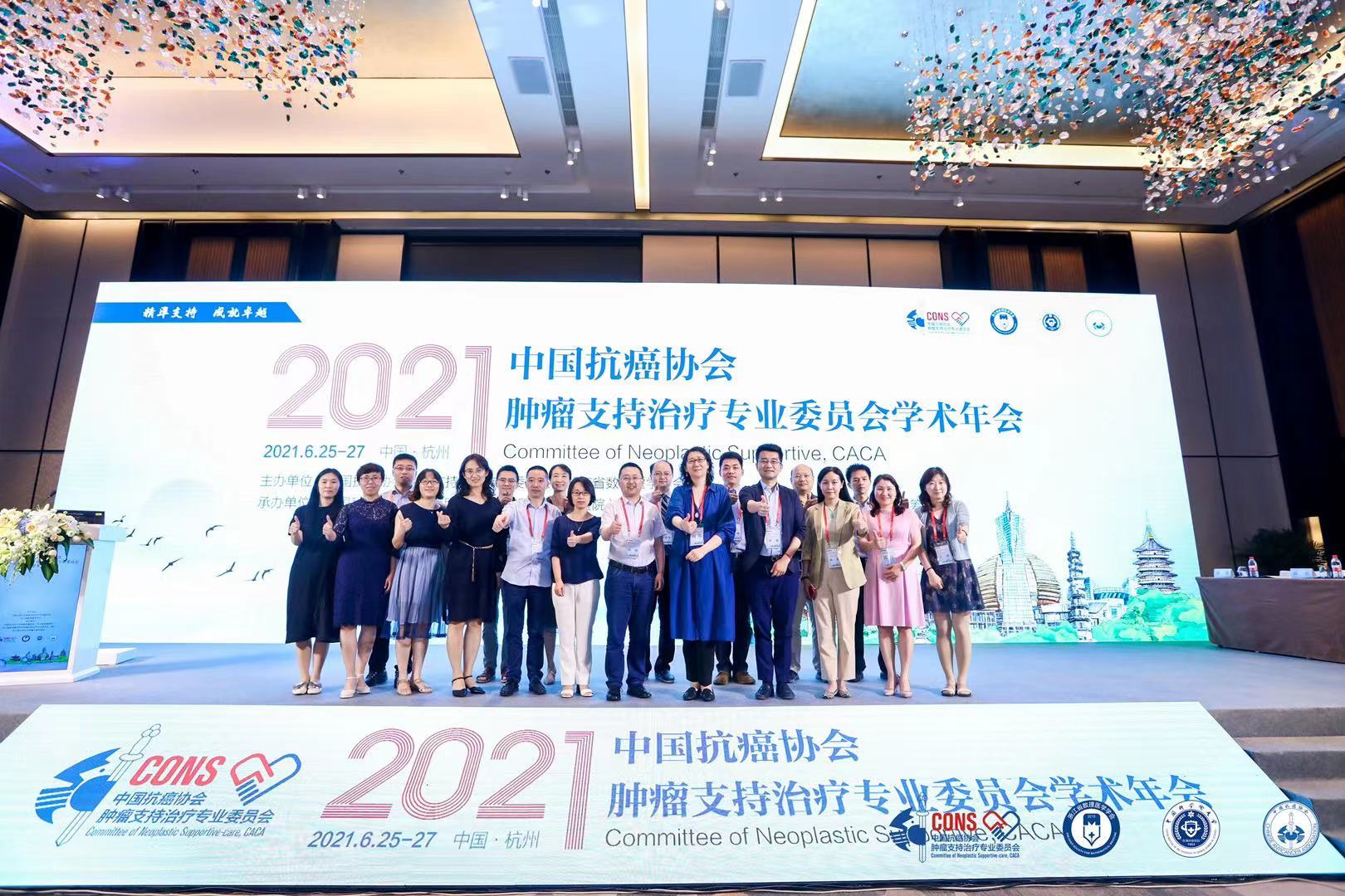 | 中国抗癌协会肿瘤支持治疗专业委员会(CONS)年会于2021年6月25日在杭州湘湖畔如约而至。本次大会由中国抗癌协会肿瘤支持治疗专业委员会、浙江省数理医学学会主办,由中国科学院大学附属肿瘤医院(浙江省肿瘤医院)、浙江省数理医学学会肿瘤支持治疗专业委员会(筹)、浙江省抗癌协会肿瘤心理专委会承办。