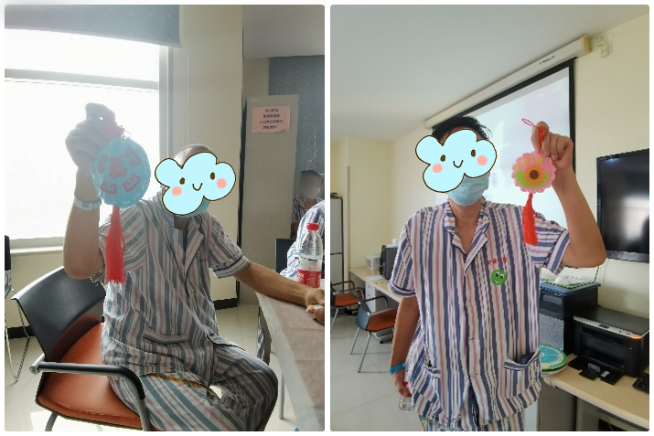 健康讲堂结束后,在护士的带领下与患者一起亲手制作了中秋福包挂件,缝制“福”、“花好月圆”、“团圆”等图案,小小的福包制作虽然简单,但却蕴含了肝胆科全体医护人员对患者的中秋祝福。患者纷纷用相机记录下这美好的时刻,将这份爱意与暖心关怀与家人们分享。