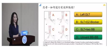 最后,天津医科大学肿瘤医院麻醉科主任尹毅青教授就目前肿瘤麻醉临床中最受关注的胸科麻醉管理的系列临床问题进行了归纳汇总。其中针对当前麻醉学肺隔离技术的难点,尹主任利用多年临床经验提出了自己的独到见解,具有较高的指导意义。