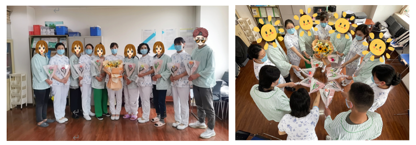 | 5月12日,为庆祝“5.12国际护士节”,更好地将人文关怀传递给患者,落实“优质护理服务”理念,营造温馨和谐的氛围,为患者减轻疾病带来的痛苦情绪与负担,拉近护患之间的心理距离,在护士长张亚平的带领下,骨与软组织肿瘤科护理人员组织了一场别开生面的“星语心愿”献爱心活动为患者献上爱与祝福。共有8名护士、10余名患者及家属参加。