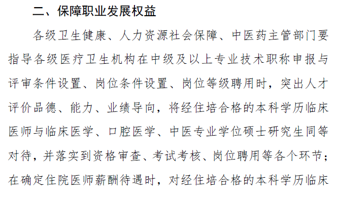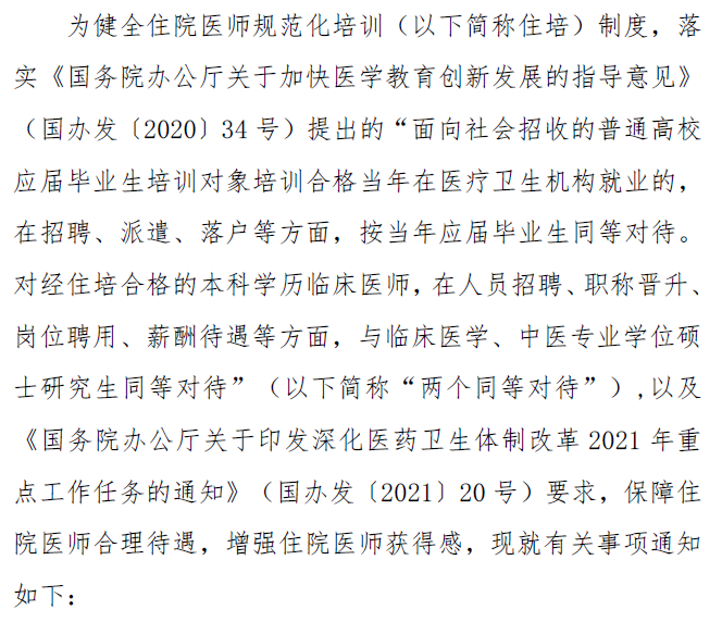 转发关于贯彻落实住院医师规范化培训“两个同等对待”政策的通知