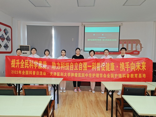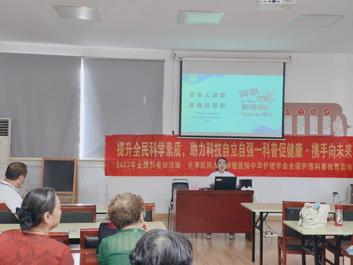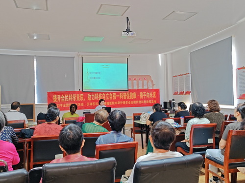 | 为贯彻落实党的二十大精神以及深入开展学习贯彻习近平新时代中国特色社会主义思想主题教育、响应中华护理学会开展的“科普促健康,携手向未来”全国科普日活动,在护理部的带领与支持下,食管肿瘤科于2023年9月20日走进西青区金厦新都庄园社区服务中心开展科普讲座。护士长带领七名优秀护理骨干将防癌、养老知识带到了百姓身边。