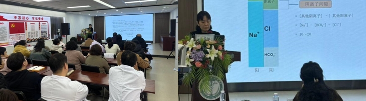 会议现场张爱敏主任就《动脉血气分析六步法》和《血气分析前误差》两个专题展开培训,培训内容涵盖了动脉血气分析采血流程、标本的运送与接收、动脉血气分析质量控制三大方面,旨在指导全院临床医护人员提升患者动脉血采集的规范化水平、提高动脉血气分析结果的准确性,确保患者的安全治疗和操作者的职业安全,张爱敏主任通过列举例证,化繁为简,帮助参会人员熟悉和掌握应用血气分析判断重症患者内环境状态,指导下一步临床护理工作。