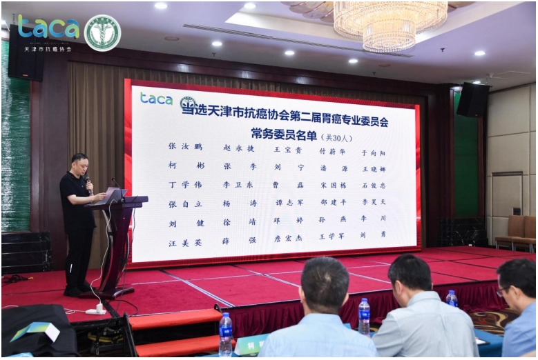 换届会议上,与会委员详细汇报了第一届委员会的工作内容,取得的成果,同时进行了专委会的选举流程,天津医科大学肿瘤医院胃部肿瘤科张汝鹏主任当选为天津市抗癌协会第二届胃癌专业委员会主任委员。