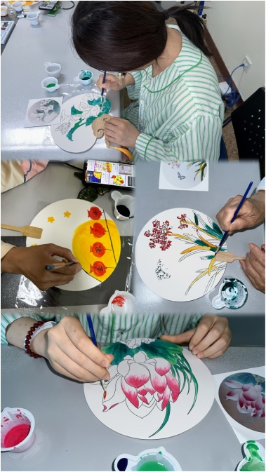 团扇,亦称“合欢扇”,其轮廓宛若明月,象征着合欢完满、团圆和睦及吉祥顺遂。恰逢中秋团圆日,我们以绘制团扇之形式,共庆佳节。