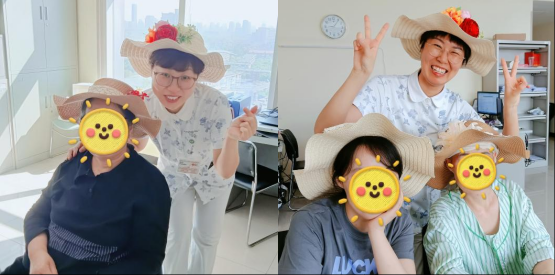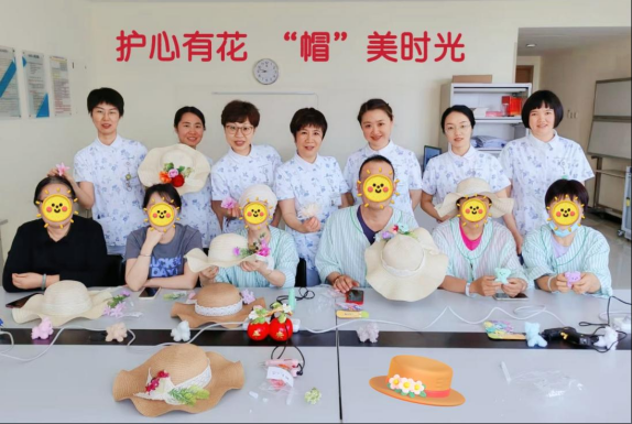 介入术后初愈的王阿姨(化名)与护士杨志敏共同将彩色镭射纸剪成蝴蝶形状并制作成草帽,起名为“蝶变之舞”,表达了对康复的信心。王阿姨说,蝴蝶“停”在她头顶,寓意是她将“破茧重生”;即将出院的李叔叔(化名)在活动中悄悄地告诉护士李荔:“其实,这顶帽子是我给爱人制作的,她陪我看病太辛苦了,我非常感谢她,可又羞于表达......”护士们得知后,悄悄地请他的爱人来到叔叔身边,帮助李叔叔一起送出了他对老伴的感激与祝福。