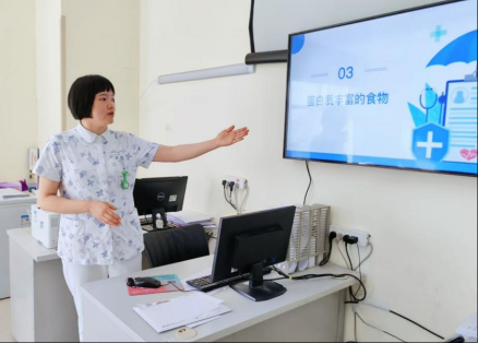 活动当天,护士长刘东军带领全体护士将会议室布置成温馨的艺术疗愈工作坊。护士汪蓉首先为患者分享了“介入术后饮食指导”,建议其多摄入高蛋白、低脂肪的食物以增强体质,让大家了解介入术后如何科学搭配营养。患者听后纷纷表示受益颇多,这些实用的饮食建议对术后恢复很有帮助。