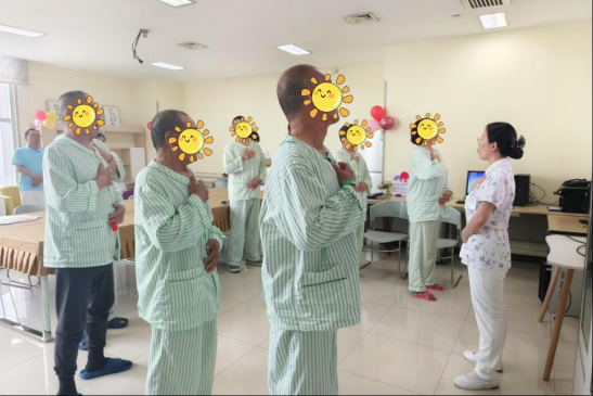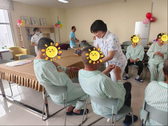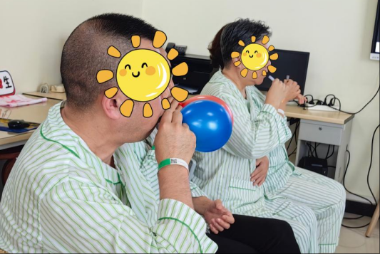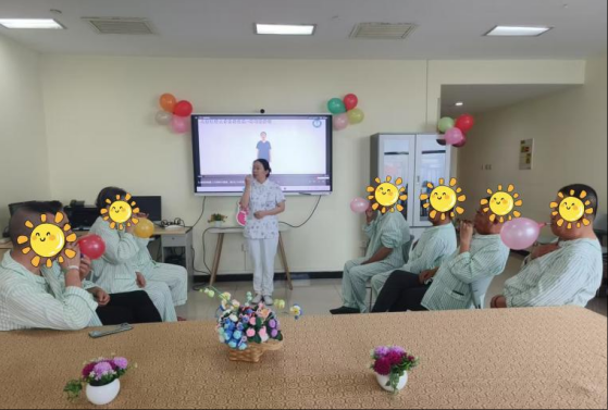 活动伊始,科室护士团队带领患者进行“绿色呼吸操”训练。在轻柔的音乐中,带教护士孙潇楠老师通过分步骤演示呼吸节奏与肢体动作的配合,指导患者掌握腹式呼吸、缩唇呼吸等技巧,帮助提升肺功能,缓解治疗中的胸闷气短症状。患者们积极参与,现场气氛温馨融洽,许多家属也加入学习行列,表示“简单易学,回家也能一起练习”。